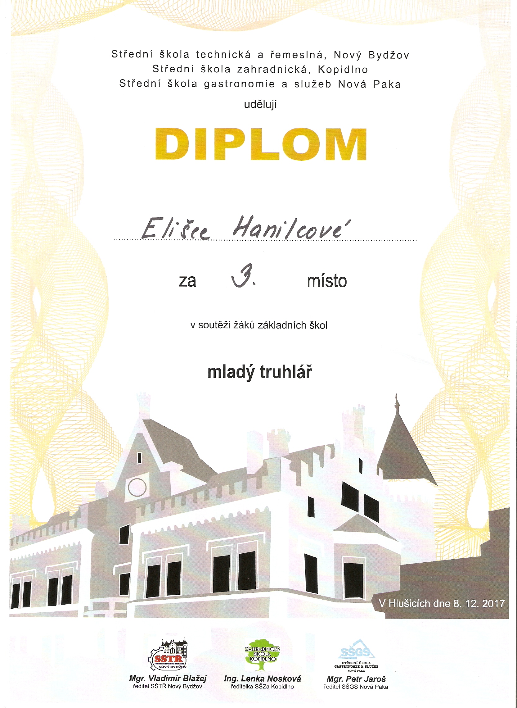 V pátek 8. prosince se vybraní žáci devátého ročníku zúčastnili soutěže Já už to znám, umím, kterou organizuje Střední škola technická a řemeslná. Soutěž je rozdělena do dvanácti kategorií dle studijních oborů, ve kterých si studenti základních škol poměří své znalosti a dovednosti.